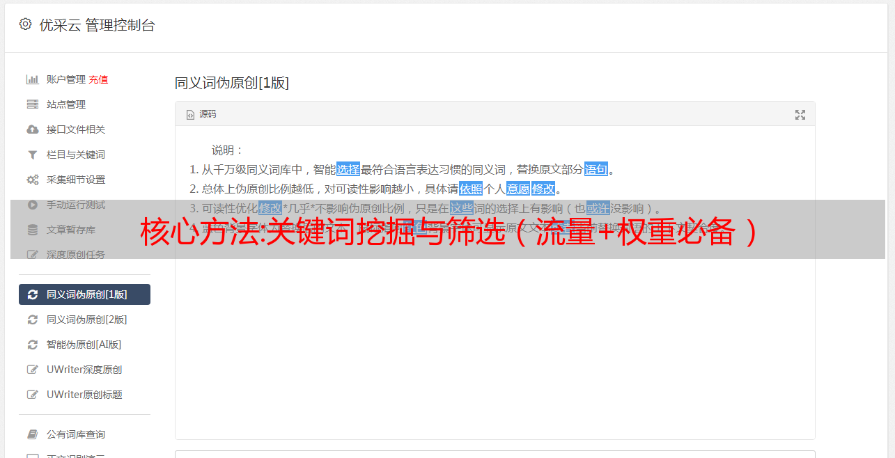 优采云 发布时间: 2022-10-23 02:41核心方法:关键词挖掘与筛选(流量+权重必备)