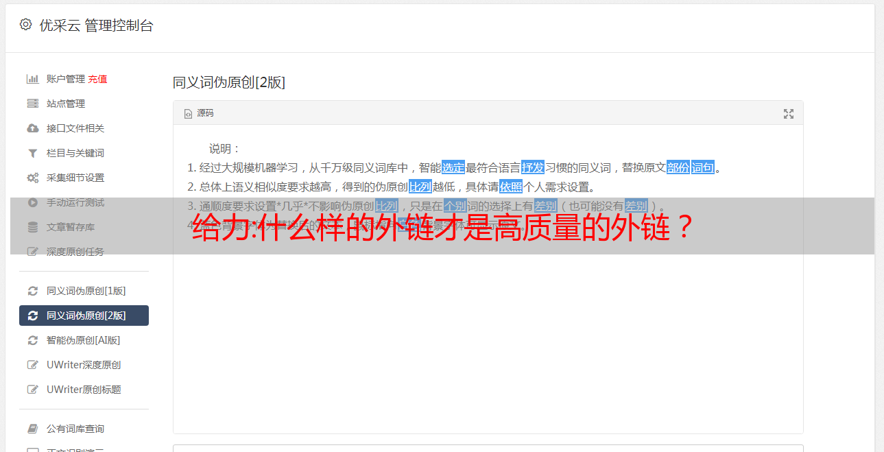 如果自己不知道怎么修改,语言能力比较差,可以使用一些伪原创工具。注意,使用时可以锁定核心词汇,无需更改!