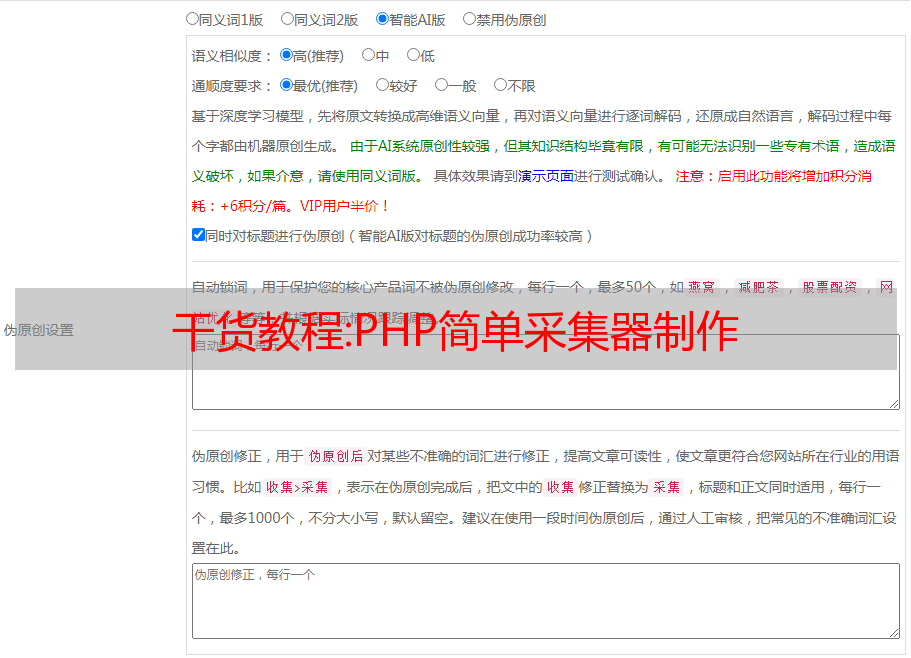 用php做采集器主要用到两个函数:file_get_contents()和preg_match_all()。前者是远程读取网页内容,但只能在php5以上版本使用。后者是常规功能。用于提取所需的内容。