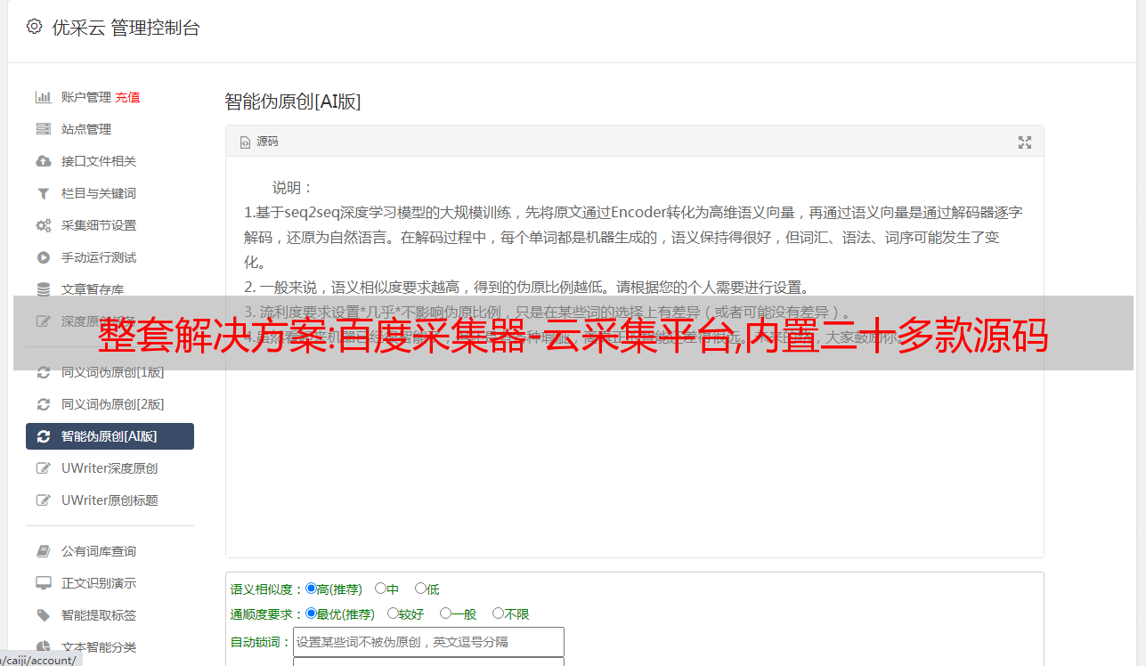 整套解决方案:百度采集器-云采集平台,内置二十多款源码