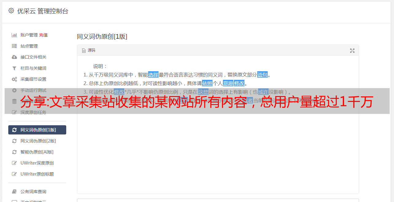 分享:文章采集站收集的某网站所有内容,总用户量超过1千万
