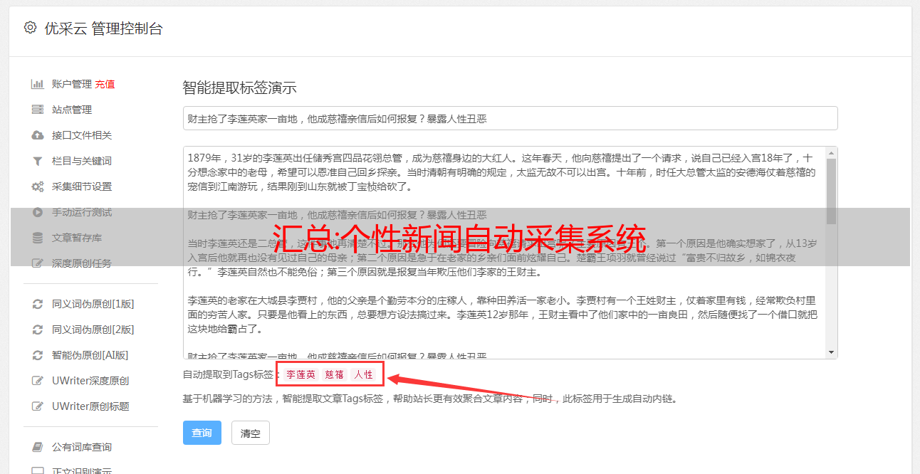优采云 发布时间: 2022-10-24 17:41汇总:个性新闻自动采集系统