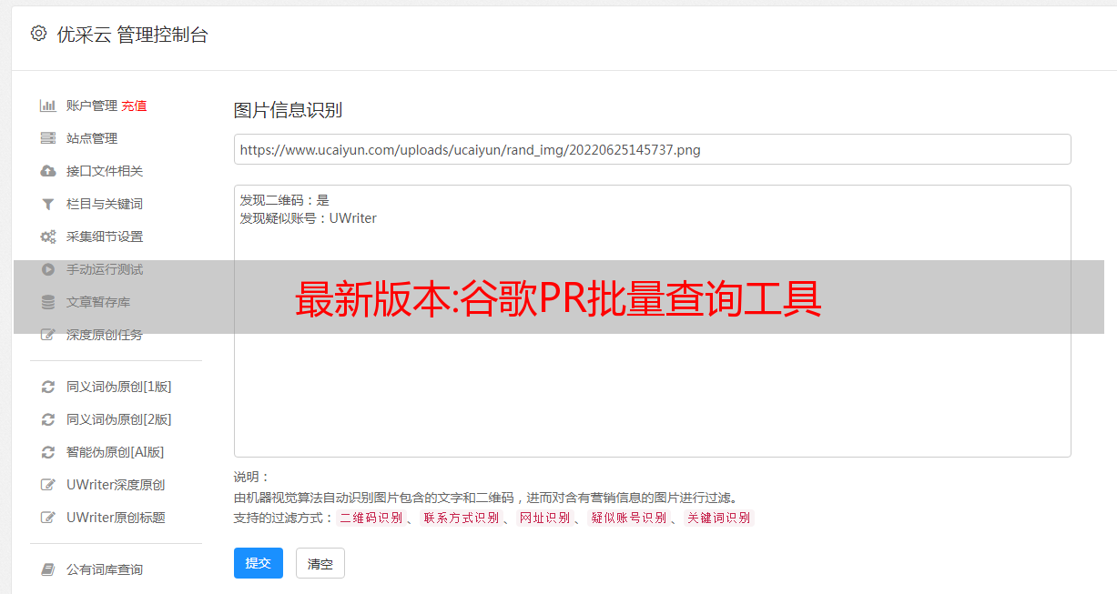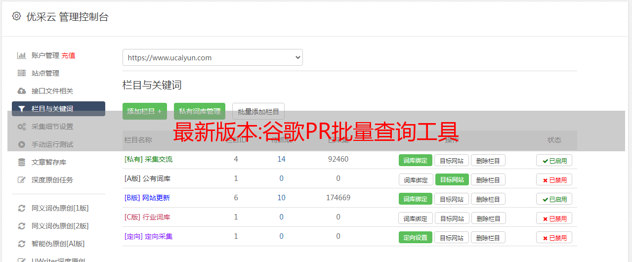 优采云 发布时间: 2022-10-25 06:32最新版本:谷歌PR批量查询工具