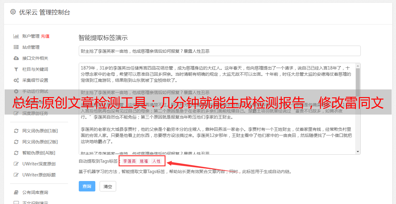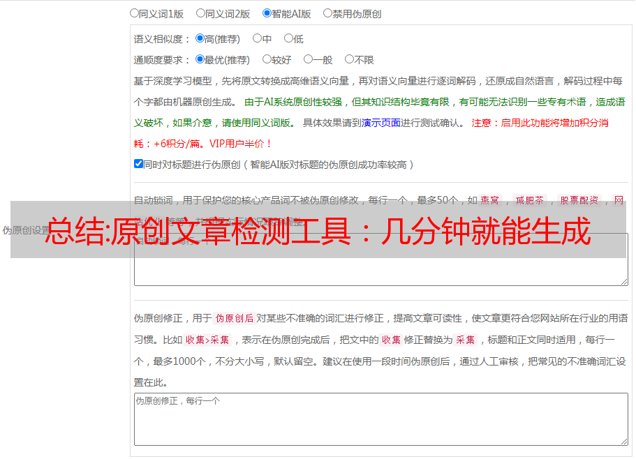 总结:原创文章检测工具:几分钟就能生成检测报告,修改雷同文字可提升原创度