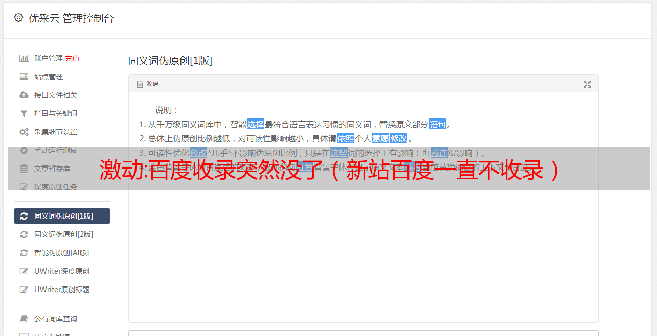 优采云 发布时间: 2022-10-25 17:34激动:百度收录突然没了(新站百度一直不收录)