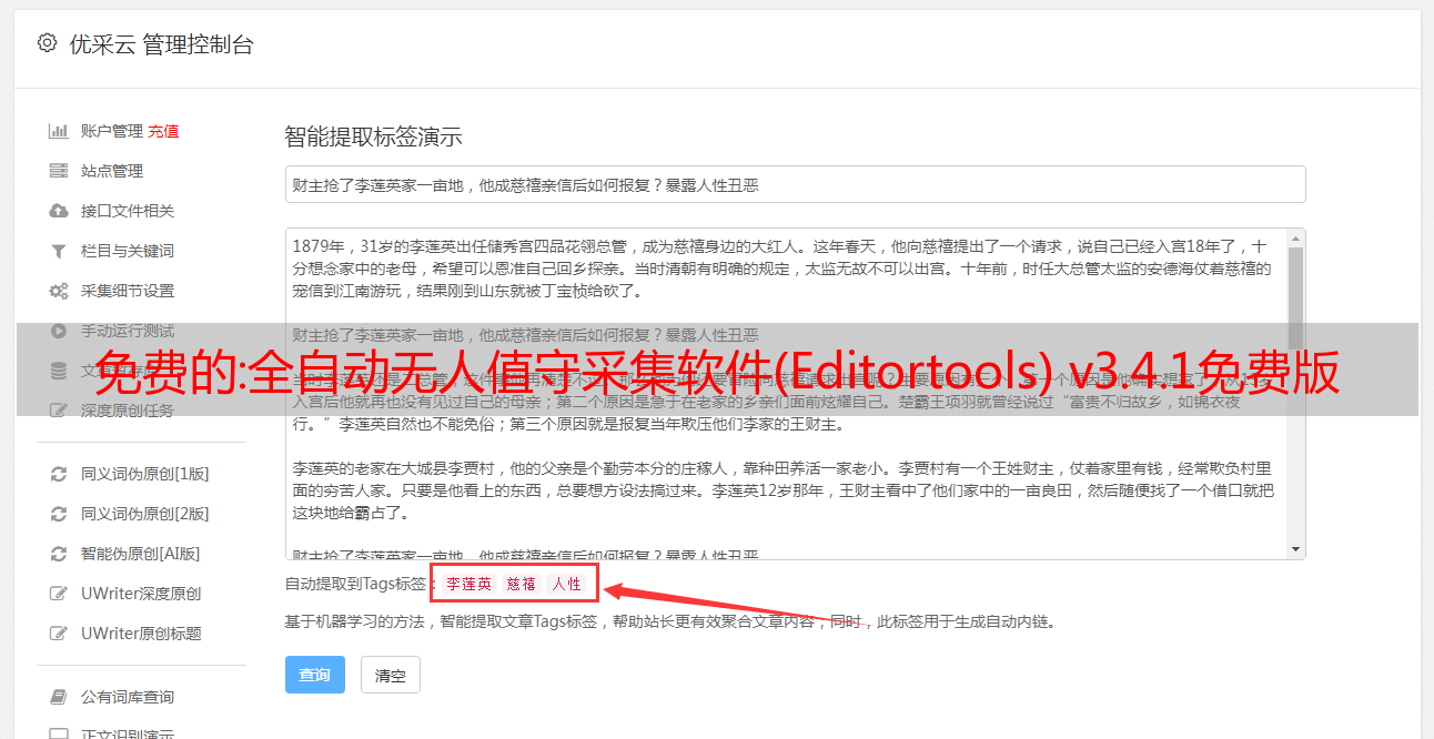 免费的:全自动无人值守采集软件(Editortools) v3.4.1免费版