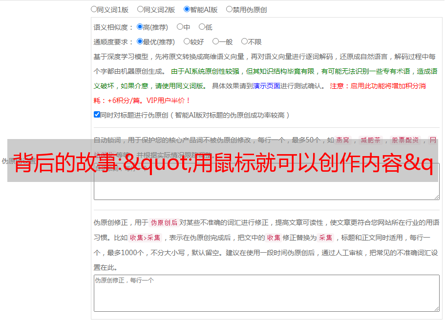 结合插件的增强,伪原创功能在网页上的应用变得更加高效、便捷和强大。