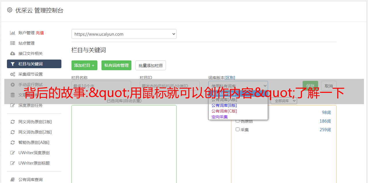 跳转到5118官网的伪原创进行进一步的调整和创作。除了整句伪原创和一键式伪原创,还可以手动一次性修改整段,保存分析后自动修改,还可以继续进行其他自动化操作。
