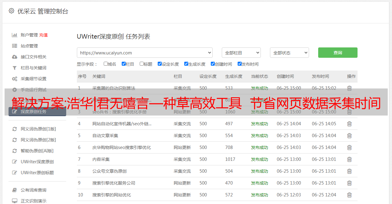 优采云 发布时间: 2022-10-26 06:09解决方案:浩华|君无嘻言—种草高效工具 节省网页数据采集时间
