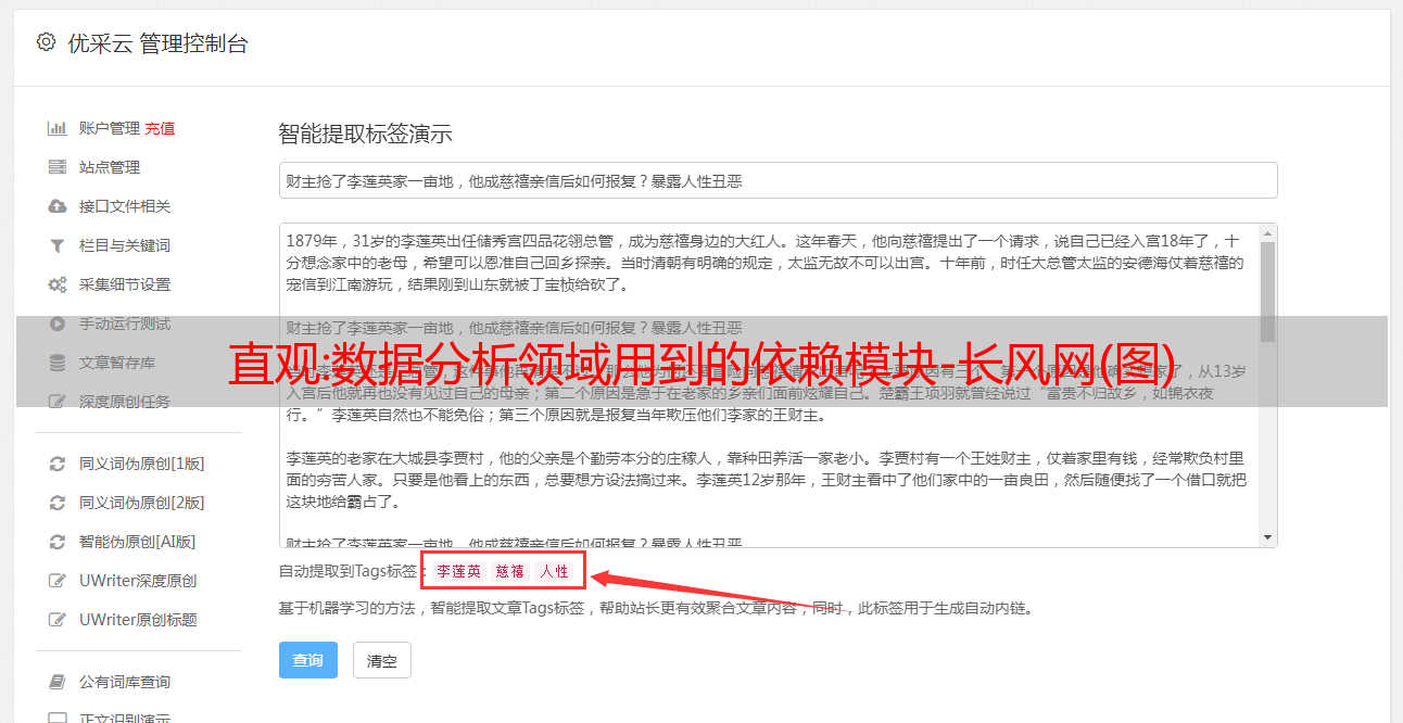 优采云 发布时间: 2022-10-26 10:20直观:数据分析领域用到的依赖模块-长风网(图)