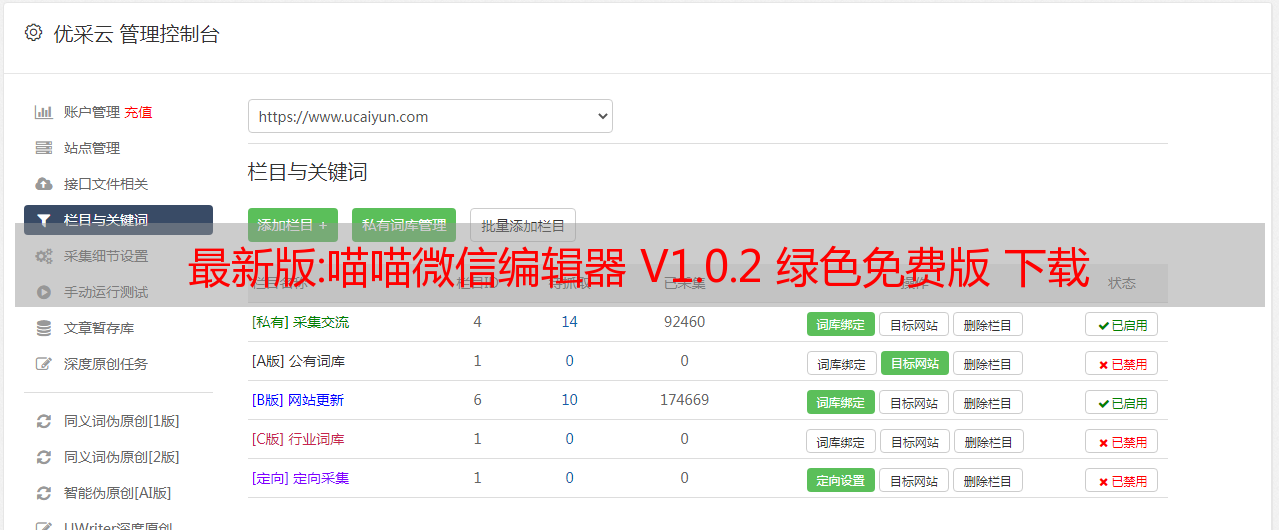 优采云 发布时间: 2022-10-26 16:19最新版:喵喵微信编辑器 V1.0.2 绿色免费版 下载