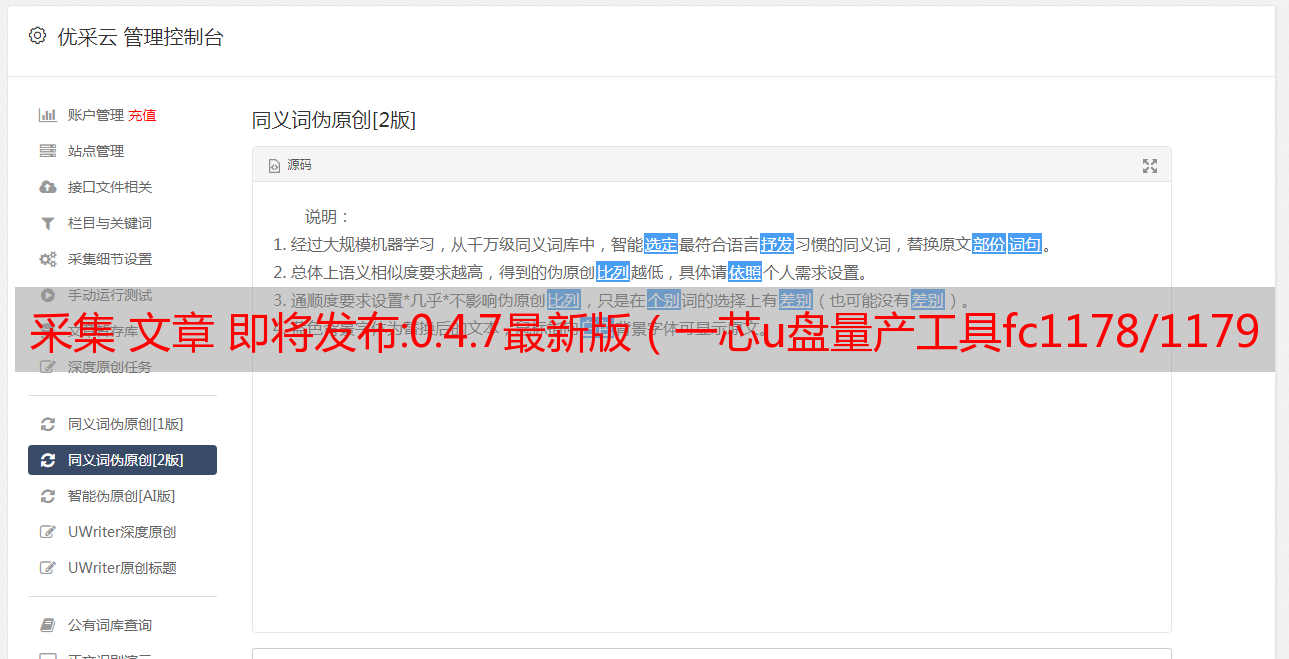 采集 文章 即将发布:0.4.7最新版(一芯u盘量产工具fc1178/1179).