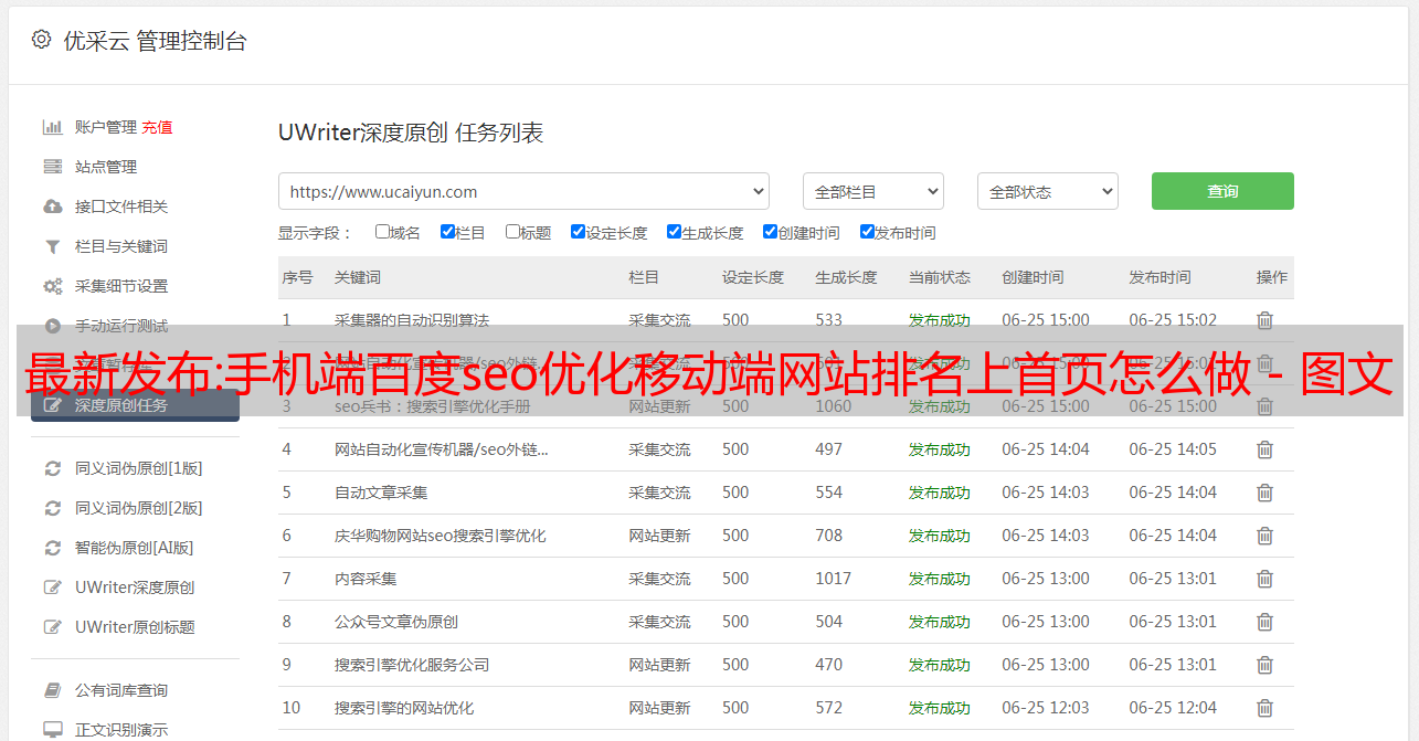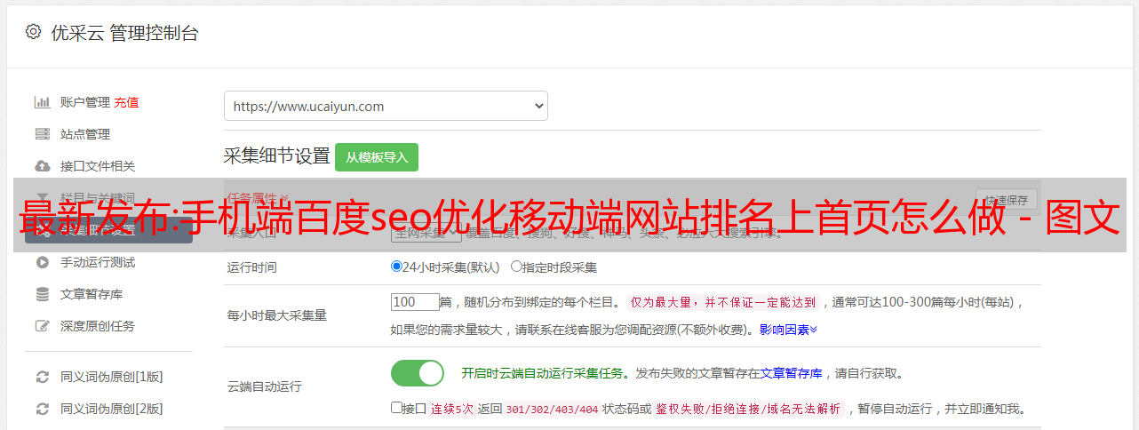 优采云 发布时间: 2022-10-26 21:19最新发布:手机端百度seo优化移动端网站排名上首页怎么做 - 图文