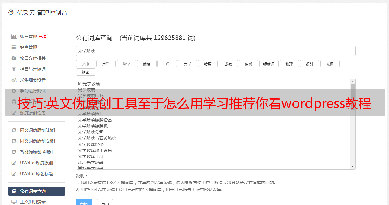 优采云 发布时间: 2022-10-27 00:12技巧:英文伪原创工具至于怎么用学习推荐你看wordpress教程