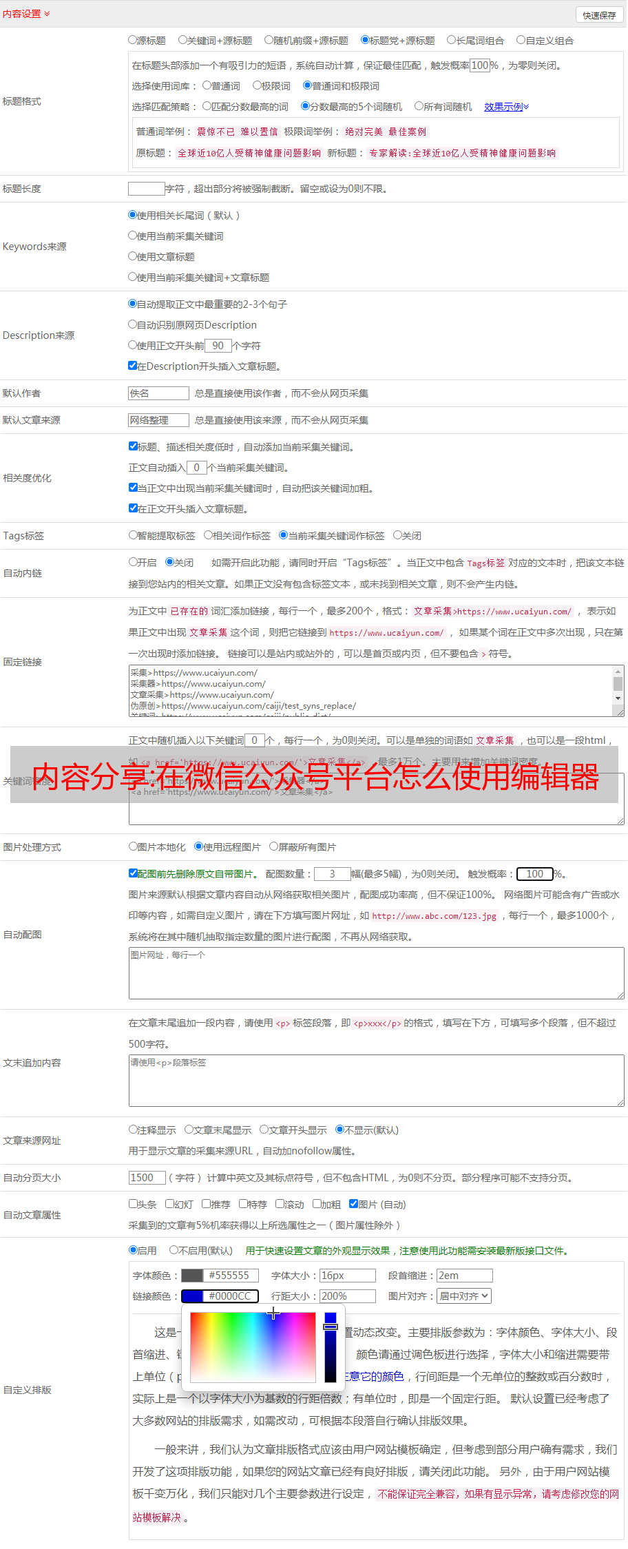 采集内容主要针对其他网站文章的采集。如果你看到其他公众号文章的排版风格或者内容是你喜欢的,你可以试试“内容采集”功能,但是要注意你的采集的内容需要对方同意或授权。您可以在键盘喵微信编辑器的右侧功能区中找到此功能。