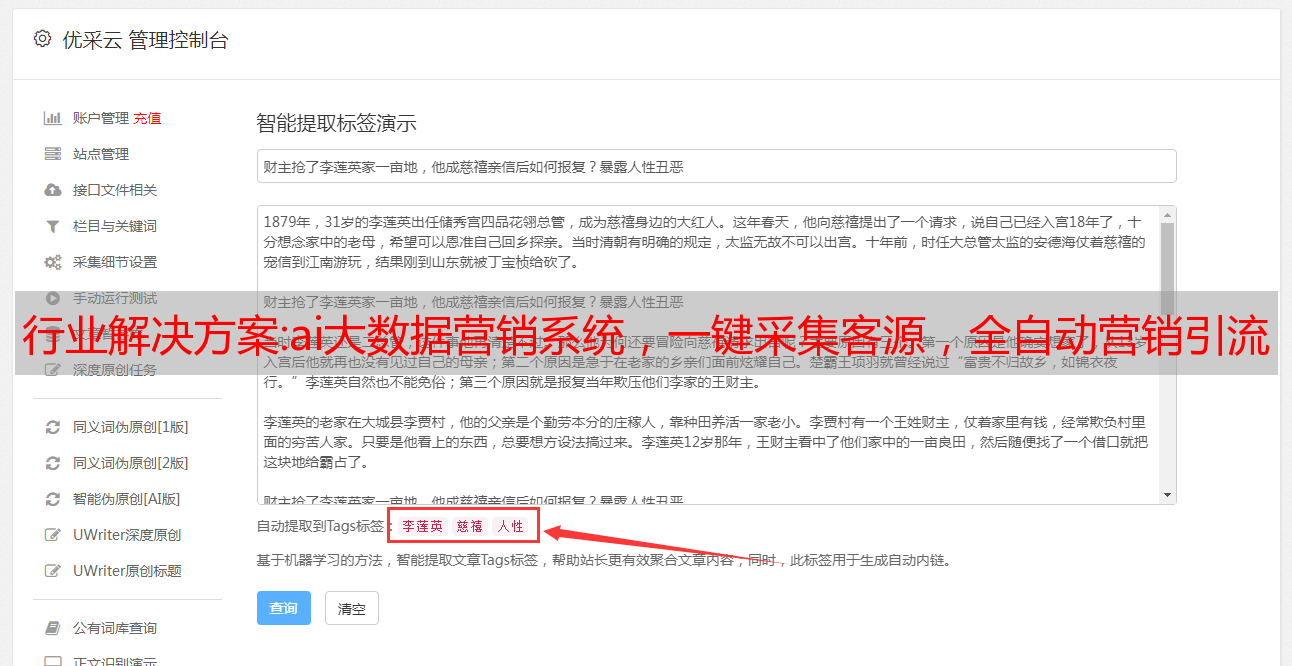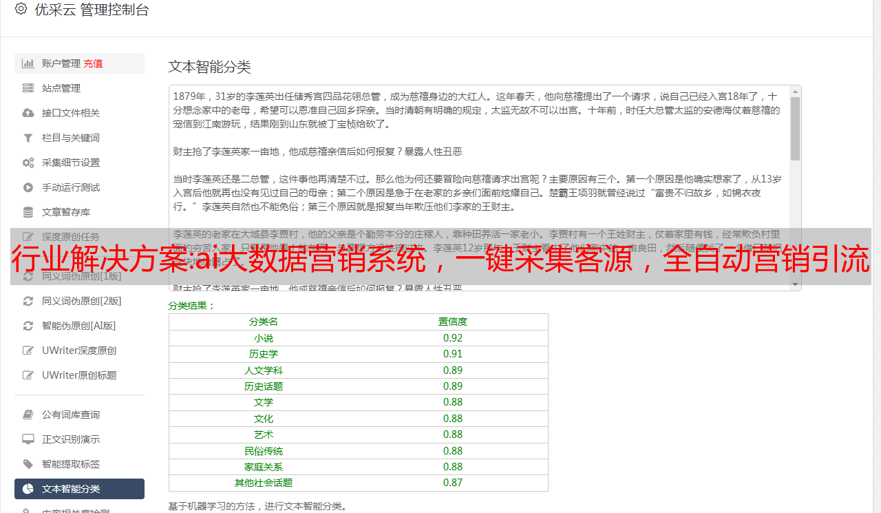 优采云 发布时间: 2022-10-27 08:17行业解决方案:ai大数据营销系统,一键采集客源,全自动营销引流