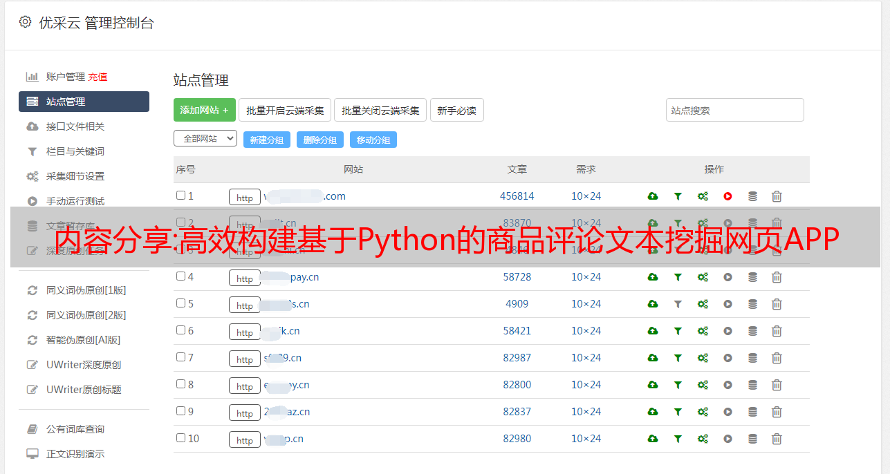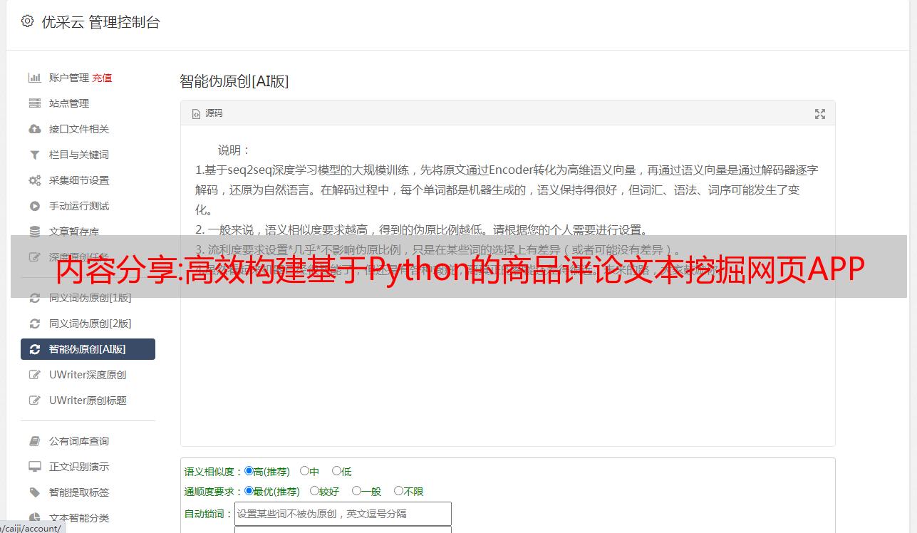 优采云 发布时间: 2022-10-27 12:27内容分享:高效构建基于Python的商品评论文本挖掘网页APP