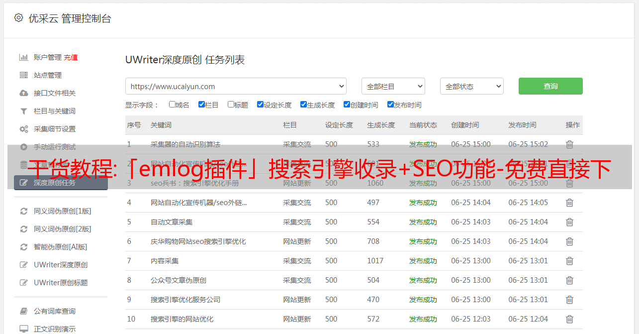 emlog插件?为什么要使用emlog插件?因为emlog插件可以帮助我们快速完成SEO优化,而且emlog插件可以实现今天给大家推荐的emlog插件工具的多个功能集。一键建站+内容资源采集+伪原创+搜索引擎主动推送收录+SEO功能!. emlog 插件仍然可以免费下载和直接使用。稍后我们将以图片的形式向您展示。大家注意看图。