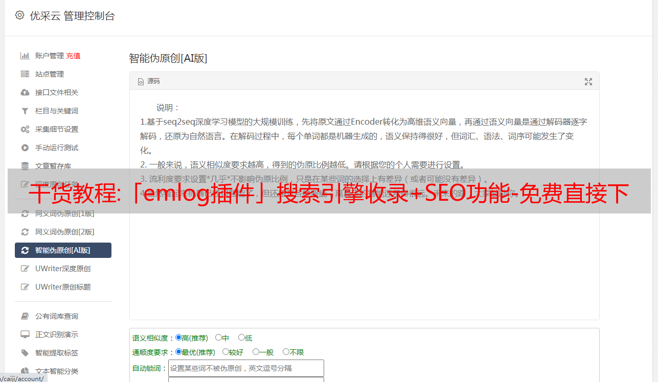 优采云 发布时间: 2022-10-27 18:25干货教程:「emlog插件」搜索引擎收录+SEO功能-免费直接下载使用内容更新