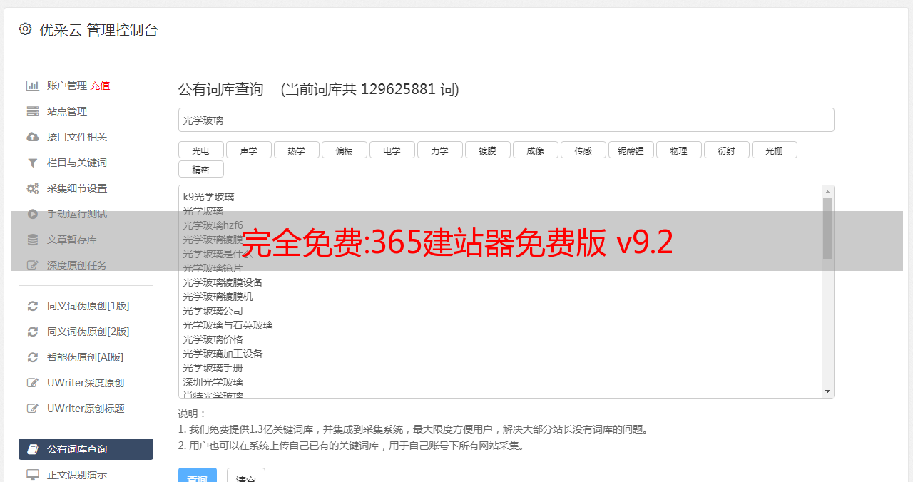 优采云 发布时间: 2022-10-28 16:28完全免费:365建站器免费版 v9.2