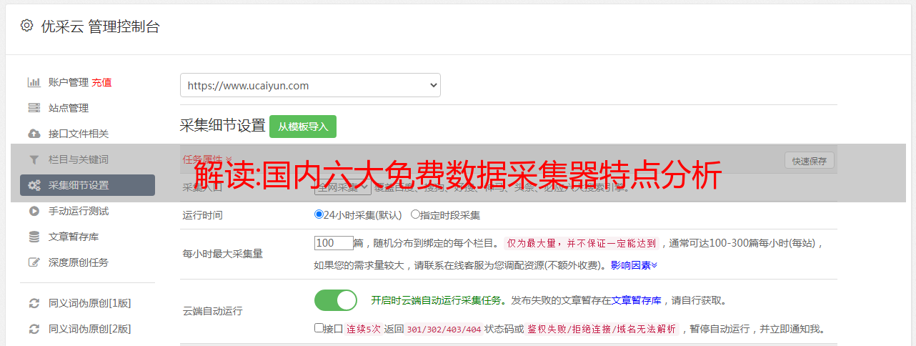 熟悉写作规则,追求功能非常齐全的人可以选择优采云采集器。