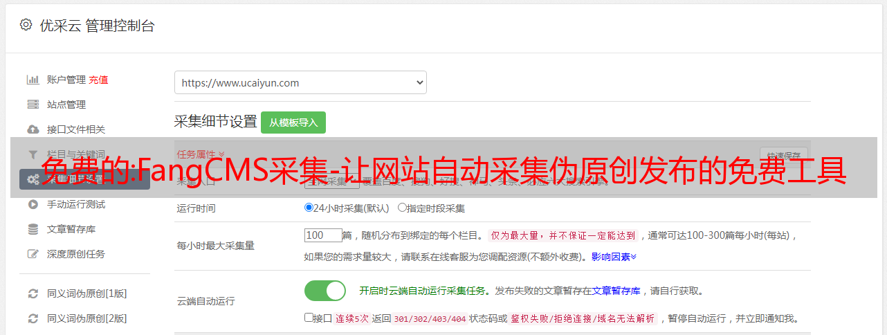 免费的:FangCMS采集-让网站自动采集伪原创发布的免费工具