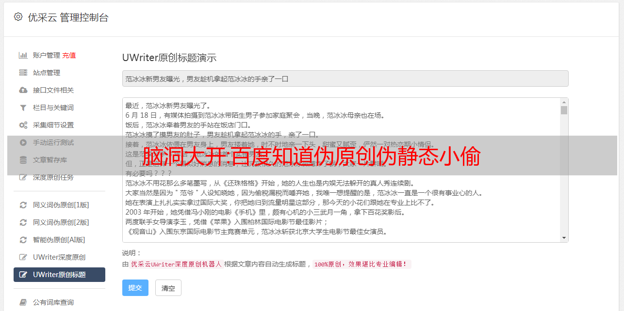 优采云 发布时间: 2022-10-28 19:35脑洞大开:百度知道伪原创伪静态小偷