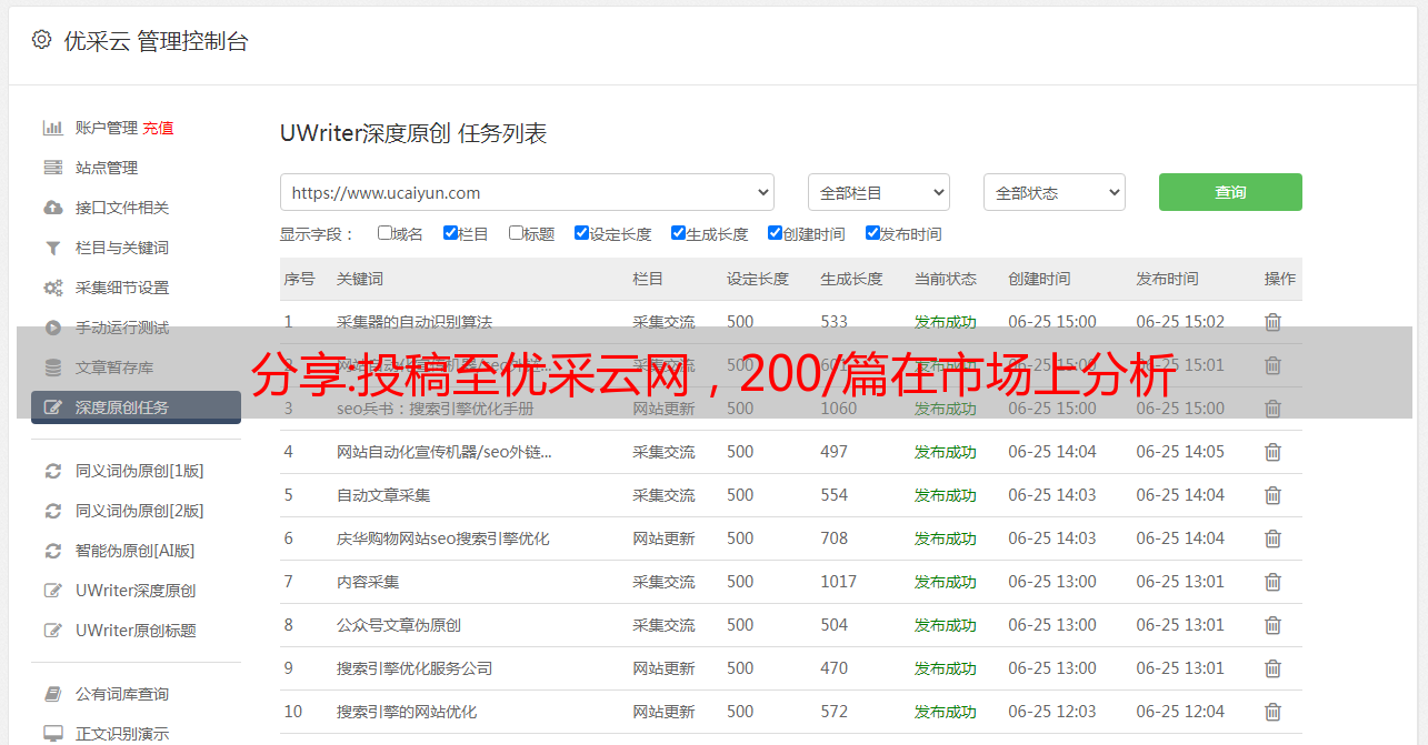 优采云伪原创投稿至优采云网,稿费200/篇在市场上分析一下优采云的实际落地,