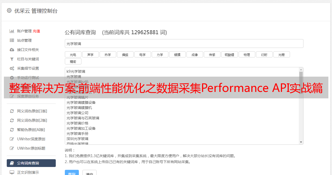 优采云 发布时间: 2022-10-29 16:22整套解决方案:前端性能优化之数据采集Performance API实战篇