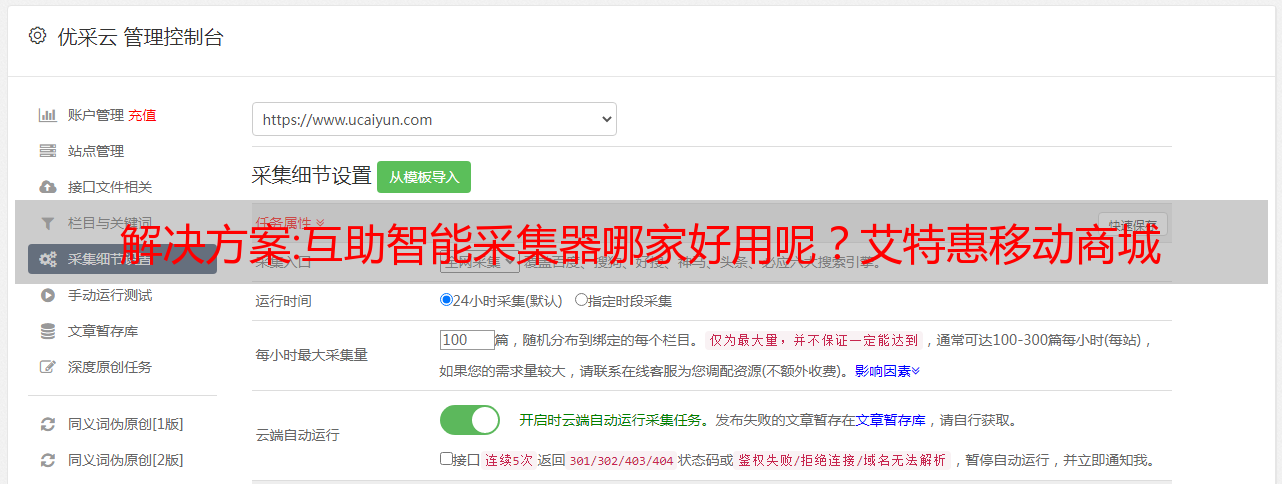 互助智能采集器哪家好用呢?很多人在出现了网站无法访问,登录不了问题,考虑过自己做基础代理平台是不是可以解决这些问题,但是这是一条没有前途的路,今天艾特惠移动商城小编给您推荐一款很好用的代理商商城的软件,直接下载安装就可以用了,商城24小时在线服务,开放10大类电商推广平台,可以开启创业之旅。全网智能采集,所有网站全程采集,一次采集,永久不限流量。