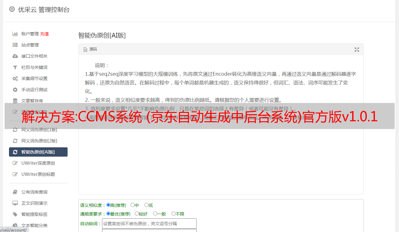 优采云 发布时间: 2022-10-30 12:19解决方案:CCMS系统 (京东自动生成中后台系统)官方版v1.0.1