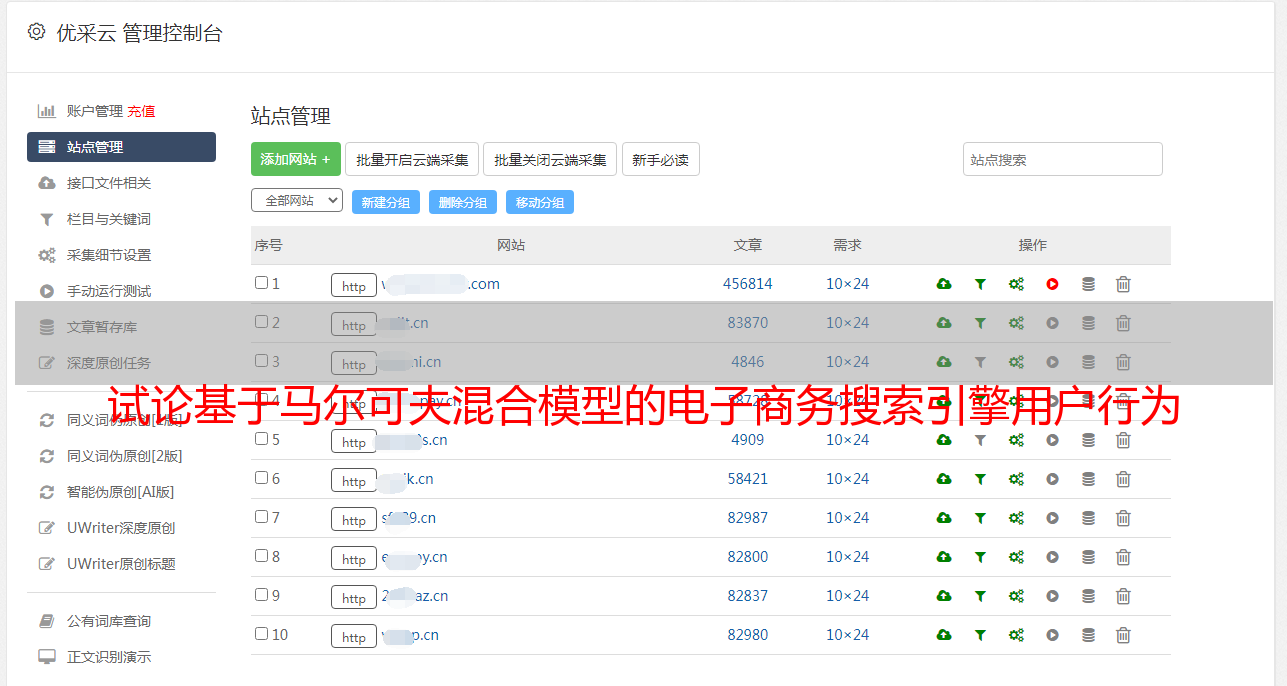 简介分析搜索引擎日志中的用户行为模式可以帮助我们深入了解用户如何与系统交互,并且可以应用于许多领域,例如改善用户界面设计1提高搜索结果的相关性2-3个性化搜索结果4 5优化系统性能6等。许多学者对通用搜索引擎日志的分析进行了大量研究。 7-8随着电子商务的发展,越来越多的用户使用搜索引擎查找所需的产品。与普通搜索引擎的比较电子商务搜索引擎的用户有许多不同的行为。用户不仅可以点击搜索结果,还可以购买感兴趣的商品。表1给出了一些来自用户操作序列的示例。根据点击序列数据,用户行为模式的聚类是深入分析用户行为的基础。基于距离的聚类策略对静态矢量特征数据聚类具有良好的效果。但是,由于本文研究的用户点击行为数据显然是动态的,因此用户不断地从一个动作跳到下一个动作。考虑使用向量表示序列的每个组件代表相应动作的出现次数,并且可能会使用基于距离的策略(例如Kmeans),这可能会失去用户的行为。 3关于基于马尔可夫混合模型的电子商务搜索引擎用户行为聚类指南的动态性质,影响聚类效果的是,一些学者使用马尔可夫混合模型或隐马尔可夫混合模型9对用户的X页面浏览行为进行建模。受此启发,本文打算使用马尔可夫混合模型来评估使用电子商务搜索引擎的用户的行为。进行建模并使用基于模型的聚类策略来反映用户操作的动态。对于基于模型的聚类策略,通常使用ExpectationMaximizationEM算法来估计参数,但是该策略的前提是必须知道组件模型的数量K。并针对本文基于ationCriterionAIC贝叶斯信息准则BayesianInformatio的电子商务搜索引擎用户行为聚类论文数据的马尔可夫混合模型