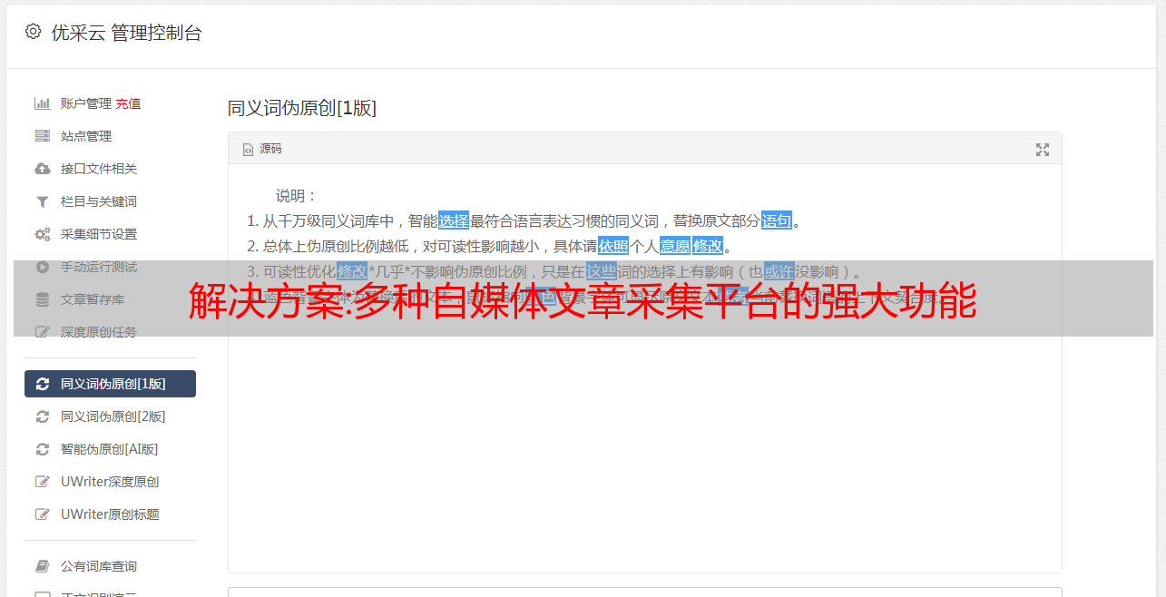 优采云 发布时间: 2022-10-31 06:25解决方案:多种自媒体文章采集平台的强大功能