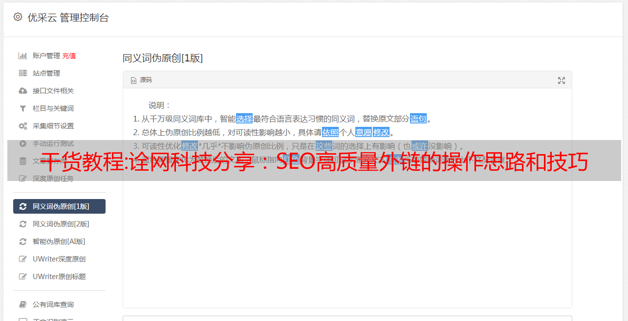 干货教程:诠网科技分享:SEO高质量外链的操作思路和技巧