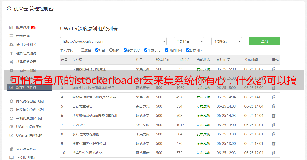 文章在线采集功能的建站系统本人用过几家,最近在看鱼爪的istockerloader云采集系统,