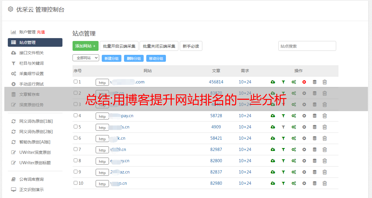 优采云 发布时间: 2022-11-01 12:28总结:用博客提升网站排名的一些分析