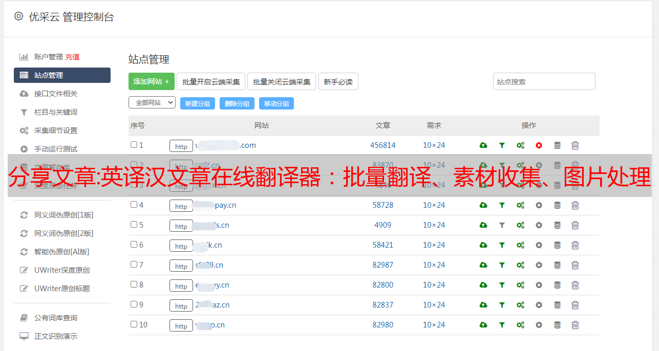 优采云 发布时间: 2022-11-02 02:15分享文章:英译汉文章在线翻译器:批量翻译、素材收集、图片处理