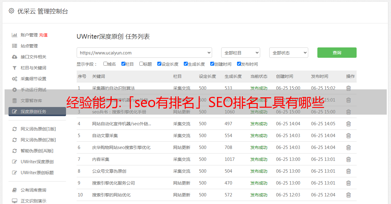 优采云 发布时间: 2022-11-02 17:31经验能力:「seo有排名」SEO排名工具有哪些