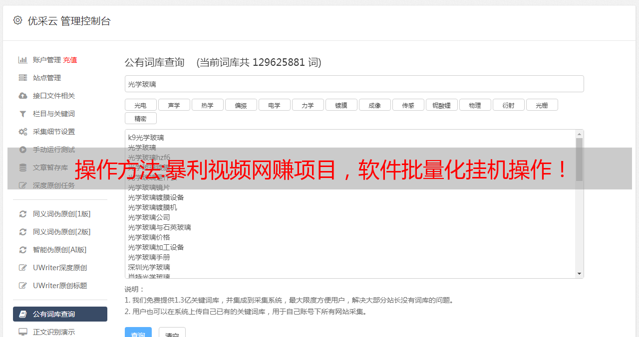 优采云 发布时间: 2022-11-03 01:18操作方法:暴利视频网赚项目,软件批量化挂机操作!