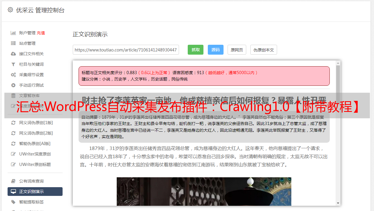 优采云 发布时间: 2022-11-04 06:14汇总:WordPress自动采集发布插件:Crawling1.0【附带教程】