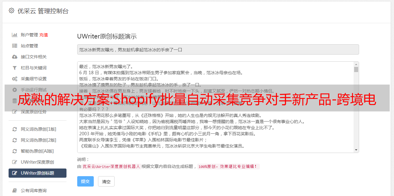 优采云 发布时间: 2022-11-04 18:37成熟的解决方案:Shopify批量自动采集竞争对手新产品-跨境电商独立站