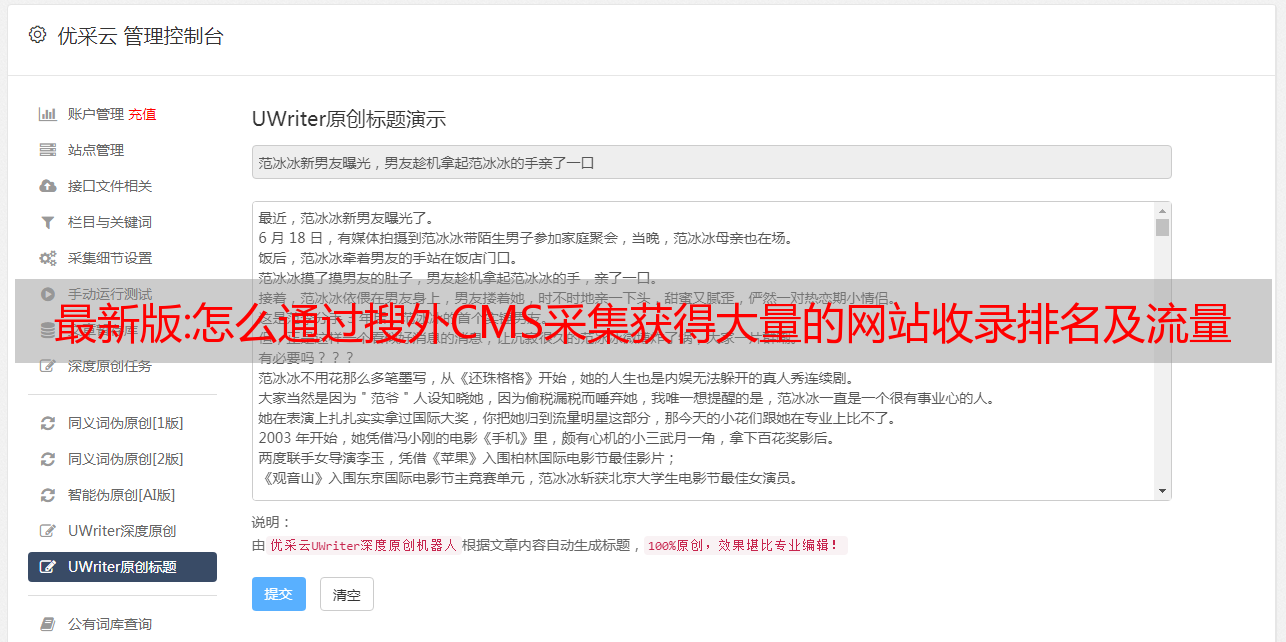优采云 发布时间: 2022-11-04 19:33最新版:怎么通过搜外CMS采集获得大量的网站收录排名及流量
