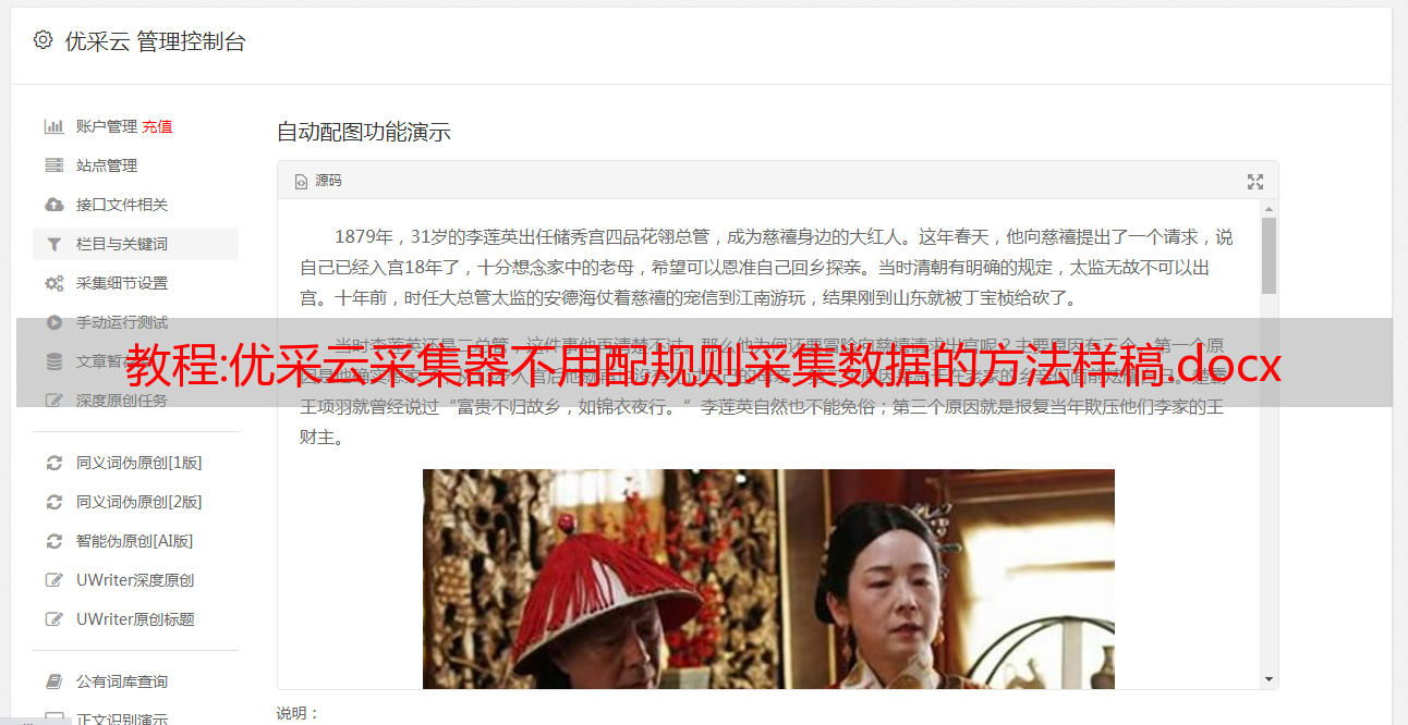 优采云 发布时间: 2022-11-06 14:15教程:优采云采集器不用配规则采集数据的方法样稿.docx