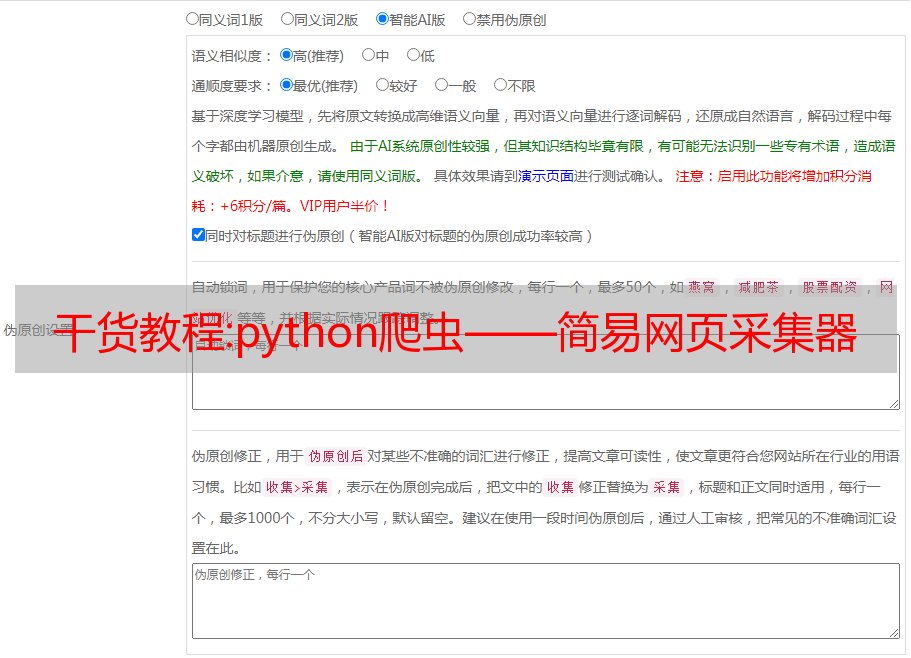 解决方法:对于重复较多导致网站降级的,需要使用原创文章或伪原创进行较大的改动,同时伪原创 时间到了,标题一定要改。不如改的比较新奇。用intitle+title名称先搜索百度,看看有没有文章同名。