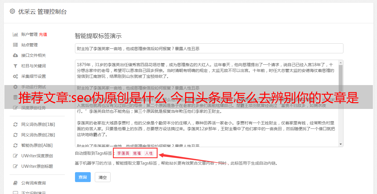 优采云 发布时间: 2022-11-07 04:19推荐文章:seo伪原创是什么 今日头条是怎么去辨别你的文章是原创还是伪原创的?