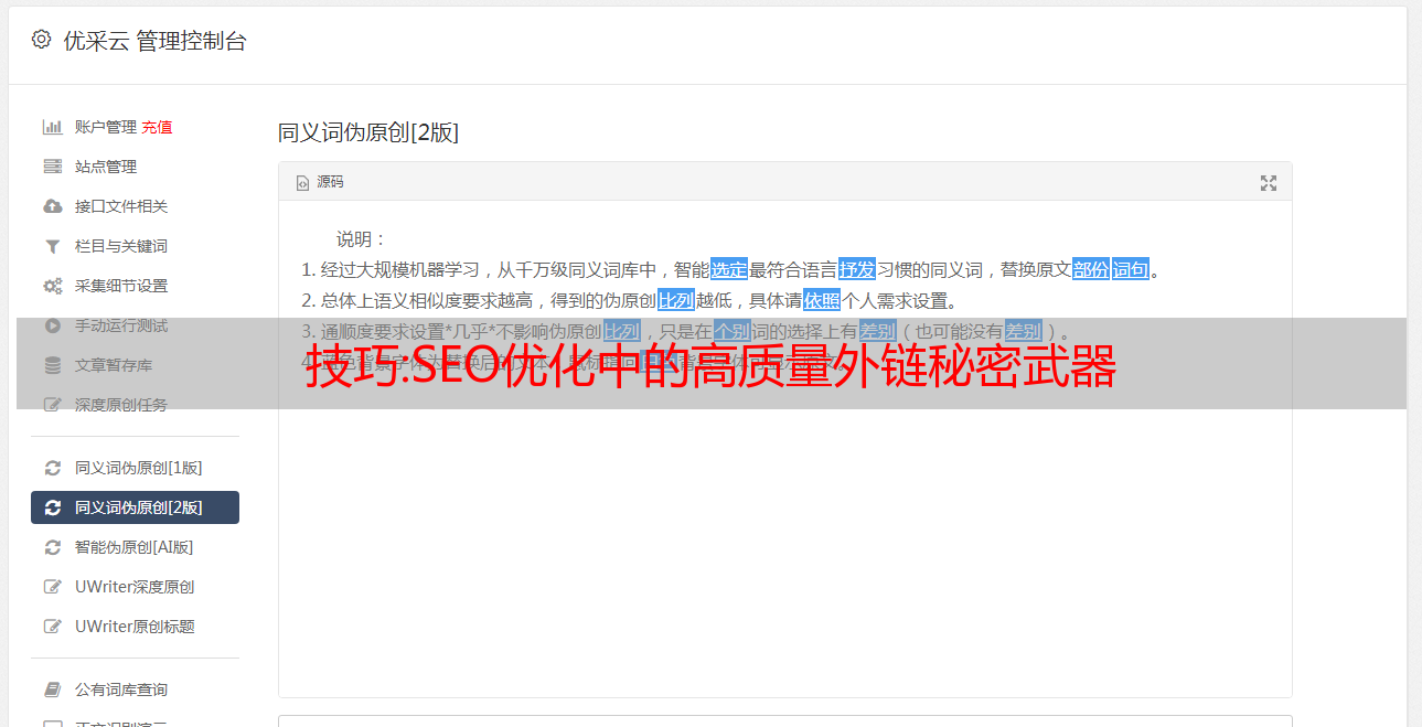 优采云 发布时间: 2022-11-07 18:23技巧:SEO优化中的高质量外链秘密武器