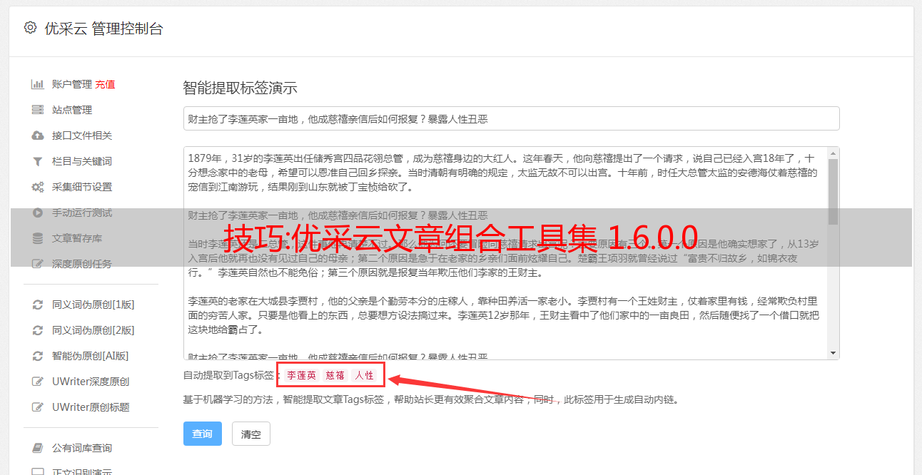 优采云 发布时间: 2022-11-07 21:35技巧:优采云文章组合工具集 1.6.0.0