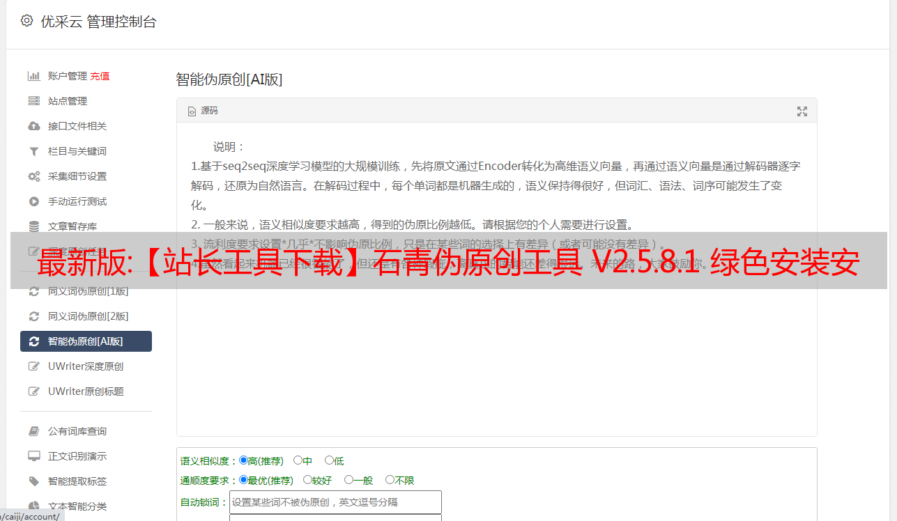 最新版:【站长工具下载】石青伪原创工具 V2.5.8.1 绿色安装安装版
