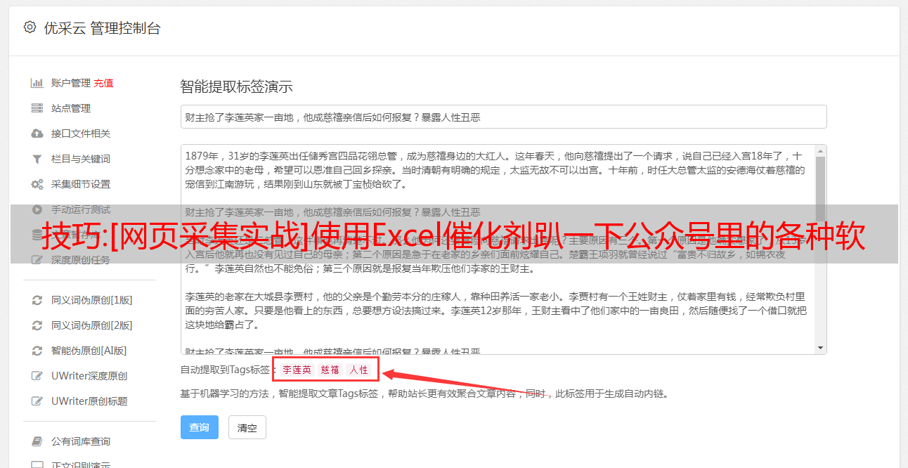 技巧:[网页采集实战]使用Excel催化剂趴一下公众号里的各种软文,越是大号越没底线