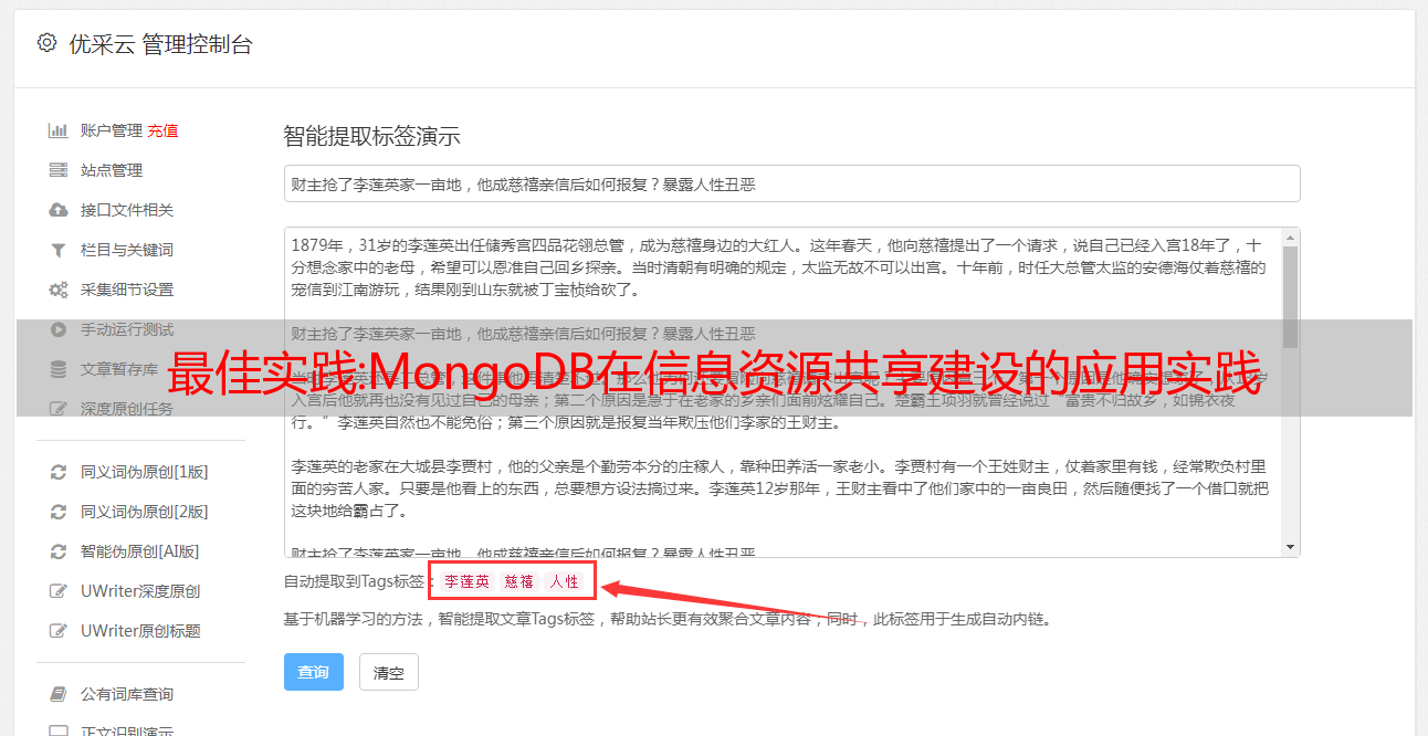 优采云 发布时间: 2022-11-09 07:30最佳实践:MongoDB在信息资源共享建设的应用实践